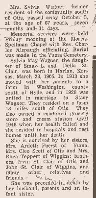 Sylvia Mae St. Clair Wagner 1905-1972 is buried in Yuma # 74384876.