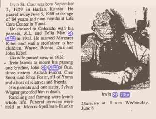 Della 1884-1967 # 104168246 and Smay Loyd St. Clair 1880-1932 are buried in Yuma.