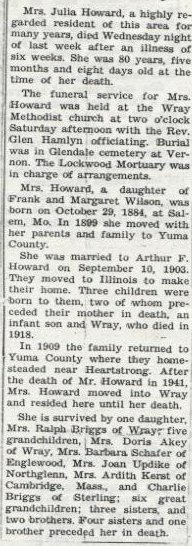 Arthur L. and Julia (Wilson) Howard, Happyville