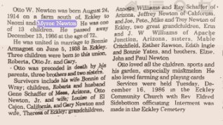 Otto 1914-1986 is buried in Wray, with Bonnie Jean (Armagost) Newton 1919-1992.