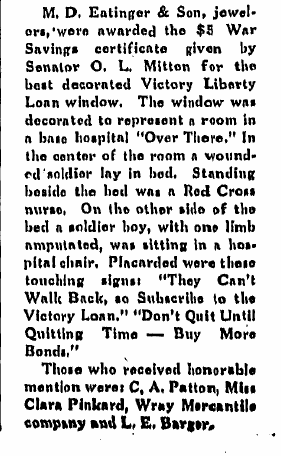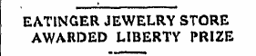 1917 "Miss Callie Lawrence has accepted a position with M.D. Eatinger in the jewelry business."