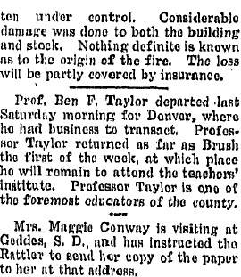 1915 "Mrs. A. D. Loar of north of town, arrived home Tuesday after spending a few days with a brother in Akron, Colorado."