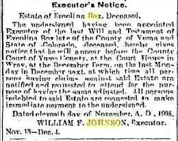 "Many of the older people or Wray and Yuma county will regret to learn of the death of Billie Johnson,