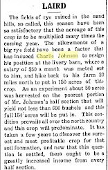 April 1914 "Charley Johnson of Alvin moved to Laird where he will take charge of the dray line."