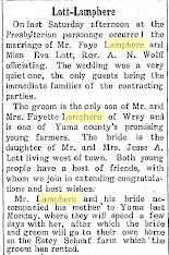 Martha Lamphere, 17, married Lee Miller on December 4, 1912 in Yuma County.