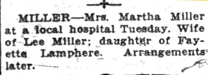 There's a Martha Miller in the state hospital in 1920 and 1930, married, born 1896 in Colorado.
