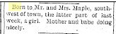 April 16, 1897 Hartford, Kentucky " Mr. Clem Maple and Miss Ada Rowan, two of the most popular