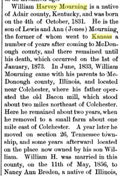 William Harvey Mourning 1831-1898 is buried in McDonough County, Illinois, # 53866764,
