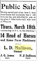 December 1915 "Mr. Mullison of Antelope Springs, and Roy and Ralph Mullison of Fort Morgan spent Christmas with Fred Mullison."