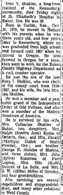 1937 Greeley "Mr. and Mrs. Ivan Shaklee and family left Monday for.Oregon, where Ihey will spend Ihe winter."