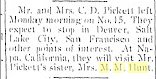 April 1919 "Frank Pickett, who had been in Denver for some time acting as