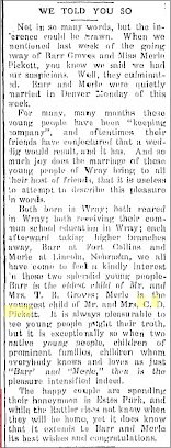 Merle PickettGroves, born March 16, 1896 in Wray, died February 1980,.