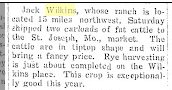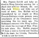 February 1916 "Mr. and Mrs. Jack Wilkins came in from their ranch eighteen
