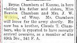 October 17, 1912 "Claude Chambers returned to his home in Junction City,