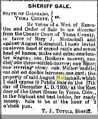 August and Mary J. Mottschall divorced in Yuma County December 5, 1900.