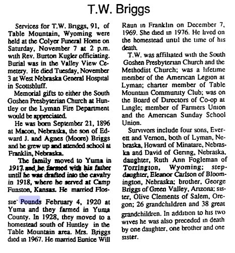 October 25, 1924 Salem Oregon Statesman "Wilma Marie is the name given: to a baby girl born to Mr. and Mrs. Joel Leonard Pounds, 130 North Twenty-fourth."