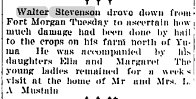 1927 "Mrs. L.A. Mustain and Mrs. John Deering went up to Fort Morgan SWednesday to visit their mother Mrs. Mary L. Pesch, who is ill at the home of Walter Stevenson near that city.