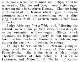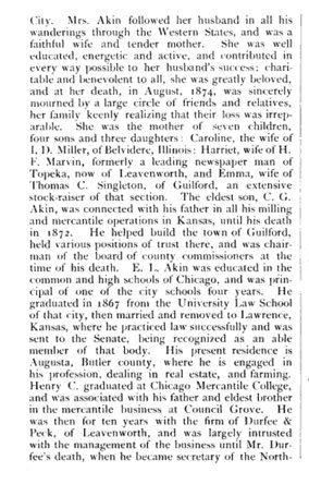 DIED.—At Guilford, Wilson county, Kansas, on Friday, August 15th, 1873, Mrs. Marian Akin, wife of Hon. Andrew Akin, aged 61 years. She was buried at Topeka, August 17th, 1873.