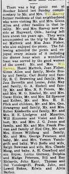 July 1953 "Mrs. W. D. Harvey, Rev. and Mrs. Trent of Hayward, Okla., called at the Beryl Allen home Wednesday morning. They were enroute to the Glen Allens and other relatives at the foot of the Rockies. "