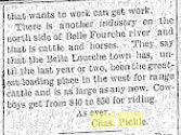December 1900 "Chas. Pickle has had his share of bad luck.