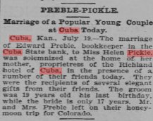 1915 Cuba, Kansas "Mrs. Milton Pickle returned to her