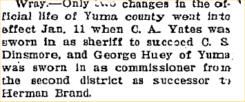 W. H. Dinsmore was a candidate for Yuma County sheriff in 1922.