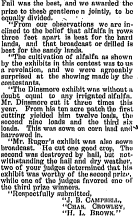 In 1913 Wilford won $100 for his field of alfalfa