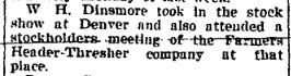 1913 "W. H. Dinsmore, of the south side, was a Yuma visitor last Friday, being in route to the Burdette country with his threshing machine."
