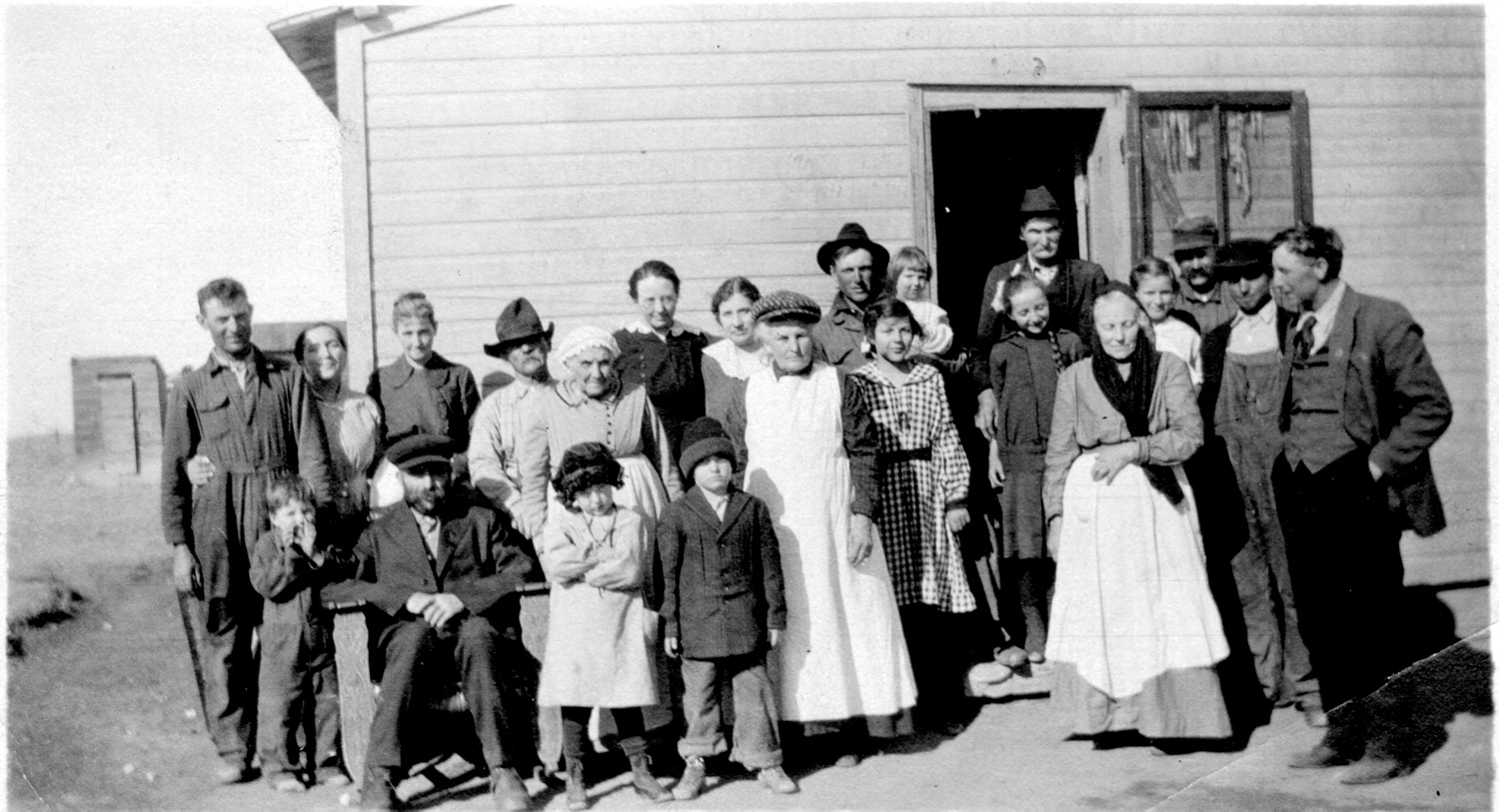 The family is in front of Cecil Scott and Belvadora's house south of Yuma, Colorado.