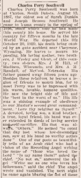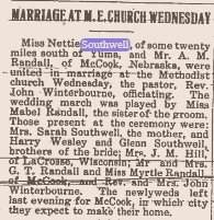 December 1921 "Mrs. Sarah Southwell, of some twenty-five miles southeast of Yuma, went to McCook, Nebraska Thursday for an indefinite stay at the home of her daughter."