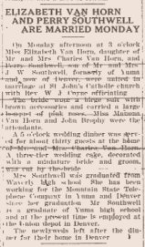 February 1944 "Elizabeth Van Horn and Perry Southwell were united in marriage."