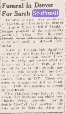 1934 "Mrs. Sarah Southwell, who had been at the home of her daughter at McCook for some time, returned to this section Saturday."
