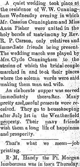 Ota's wife was a daughter of J.S. and Lear Catherine FINN, and so was Mrs. Clyde Cunningham.