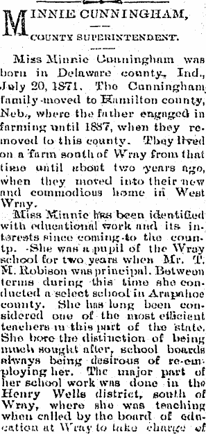 Norminnie Cunningham -1871 -1927 is buried in the Wray cemetery.
