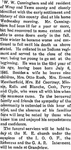 W.W., Clyde, and Cash arrived in Yuma County March 15, 1887.