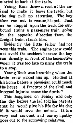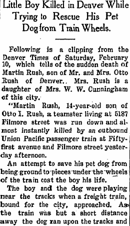 1906 "Otto Rush shipped his household goods to Denver last Monday. His family will leave shortly for Denver to make their home."