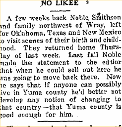 1917 "Noble Smithson returned from a trip to Oklahoma in his car. His brother came back with him on a visit."