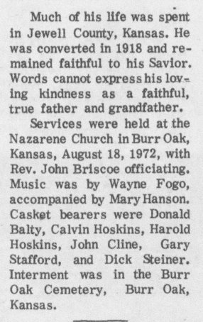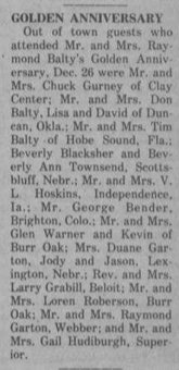 MILAN, Ill. — Donald Eugene Balty was carefully transferred from the loving hands of his family into the arms of his heavenly Father at 10 a.m., on Jan. 8, 2009, at his home in Milan. He was 71 years old. A second funeral will be held Wednesday, Jan. 14, at 10 a.m. near his boyhood home in Mankato, Kan. Don will be interred at Burr Oak Cemetery, Burr Oak, Kan., where he will be awaiting Resurrection morning. Memorials may be made to Gideons International. He was born in Nyssa, Ore., on May 24, 1937, the only child of Rev. Raymond and Amie (Bender) Balty. Donald made Jesus Christ his Lord and Savior at the age of 15. Donald fell in love with Glenda Garton as they returned to Kansas with their parents from the first conference of the Bible Missionary Church in Denver, Colo., in 1956. They became engaged three months later and married on April 19, 1957. Before moving to Illinois, Donald had lived in Scottsbluff where he was in the insurance business and his three children were born here. Don owned and operated First Choice Auto Sales Center, Rock Island, for 16 years. He was a member of the Illinois Auto Dealers Association and the National Independent Auto Dealers Association. A member of the Coal Valley Bible Missionary Church, Donald lived a life of integrity, devoted to God and his family. He had many interests among which were collecting books, cars and travel. He is survived by his wife of 51 years, Glenda; and three children, Tim (and Carolyn) of Fairbanks, Alaska, Lisa (and Charles) Croyle of Des Moines, Iowa, and David (and Amy) of Atlanta, Ga. Don and Glenda have seven grandchildren. "On the south side of the cemetery, a small tent will be staked next to monuments that bear the names, “Isaac and Rachel Bender,” and “Raymond and Amie Balty.” A few moments later, Reverend Paul Eversole will commit my father’s body to the earth, his soul to God." |