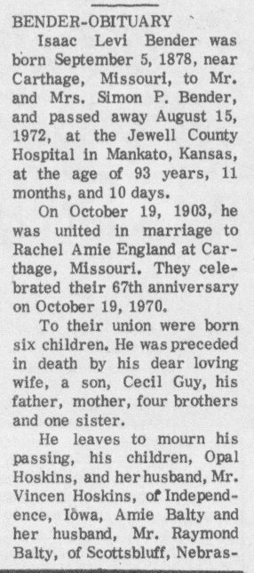Isaac L. and Rachel (England) Bender, Alvin