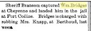 If anyone has information on the William Bridges in Yuma County, please let us know.