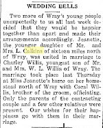 April 3, 1919 "Mr. and Mrs. Charles Willis are rejoicing
