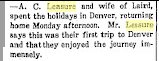 November 9, 1922 "Mrs. Myron LEISURE is visiting her parents for several weeks."