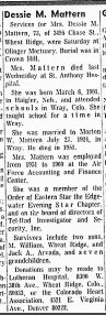 Morton W. and Dessie (Drommond) Mattern, mother Alice M. Mattern, sister Phyllis A. (Mattern) Doyle, Alvin