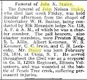 John N. Staley served as a corporal in B, 129th Illinois, suffering a gunshot wound to the right breast outside Atlanta July 20, 1864.