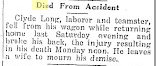 December 1916 the Yuma County commissioners paid Amos Carl $47 for burial expense for Clyde Long. Because the county had paid for supplies for Clyde iearlier in the year, the grave is likely not market with a stone.