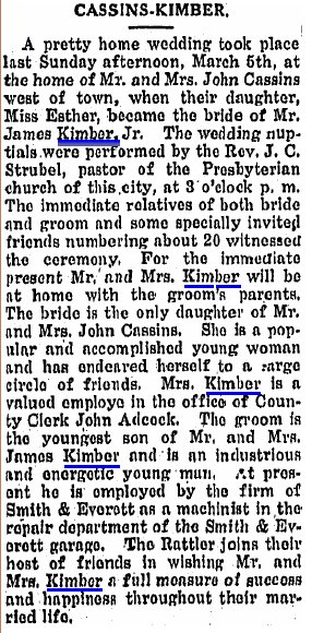 In 1880 Putnam County, Illinois, Isaac R. Kimber 65 and Matilda 60, have James A. Kimber, 21. James A. Kimber cash-claimed a quarter in 33, 1N 43W in 1890, proved up another in 1893, and Maggie E. Kimber timber-claimed a quaret in 1895.