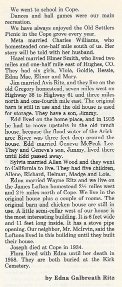 In 1910 Cope precinct, Washington County, Joseph C. and Flora M. have Meta, Hazel, James C. 10, Edgar J. 7, Sylvia M. 4, and Edna L. 1 - all kids born in Colorado