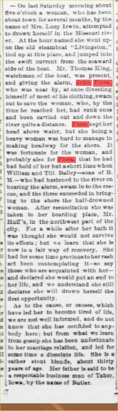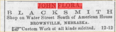 October 22, 1897 Nemaha newspaper "..... the deceased formerly lived in Brownville, being the oldest daughter of Mr. and Mrs. John Flora."