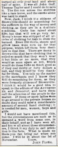 The Brownville newspaper "Miss Olive Flora, oldest daughter of John Flora, formerly of this city, now of Wilbur, Neb., was married on Thanksgiving day."