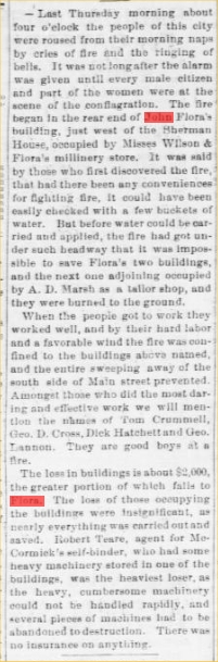 1876 John Flora was elected a delegate to the Sheridan Convention of the Democratic party.